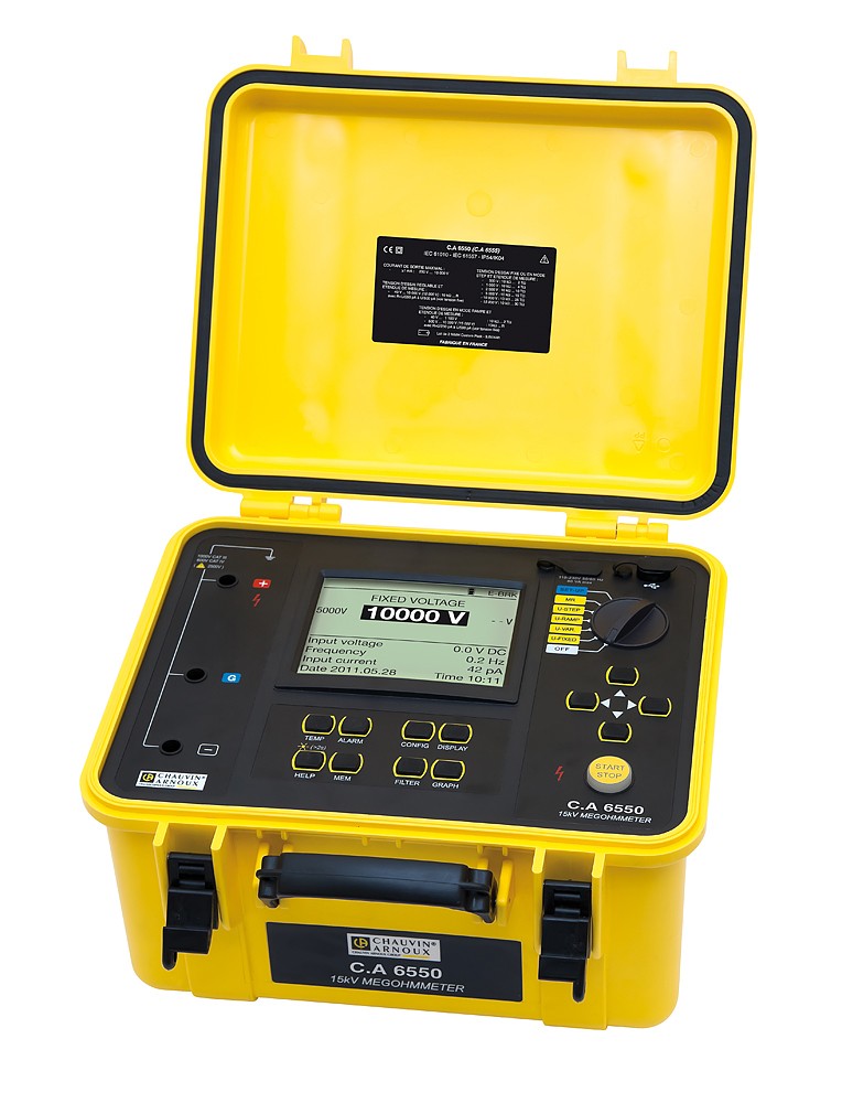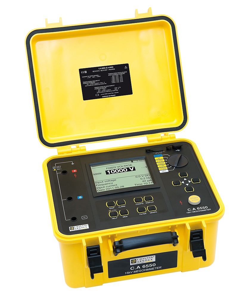 CA6550和CA6555絕緣測試儀的測試電壓最高可達10到 15kV, 是安全和精確測量絕緣電阻的專業工具。它們完全符合目前現行的推薦標準,並且顧及這些標準的未來發展趨勢。它們是用於12kV或更高操作電壓的旋轉電機和機械裝置的理想測試設備。