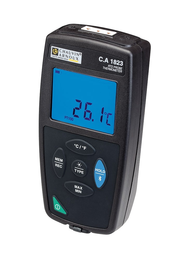 Compact and magnetized for fixed or portable use, the C.A 1823 is an accurate, versatile, long-lasting thermometer. Equipped with a wide backlit display, it offers all the useful functions for work in the field, such as Min, Max, Hold, as well as spot or programmable recording possibilities.