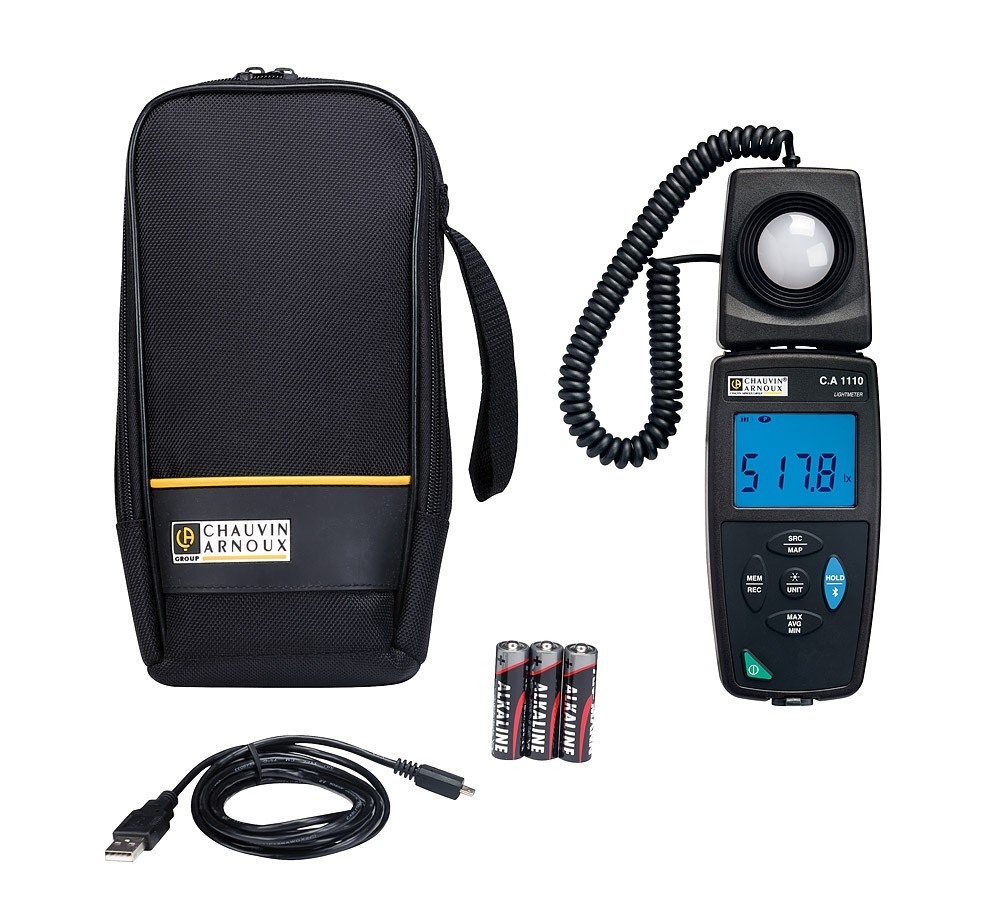 The C.A 1110 luxmeter measures the illuminance of all light sources (LED, Fluo. etc.) up to 200,000 lux in compliance with Class C of the NF C 42-710 standard.