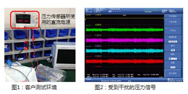 示波記錄器DL850E進行壓力訊號記錄時,總是存在很大的干擾,無法獲得穩定的壓力訊號。客戶懷疑是電壓探頭和延長線引入的干擾,但在另外的一個壓力感測器上使用相同的探頭和延長線沒有問題。客戶檢測過感測器本身也沒有問題。